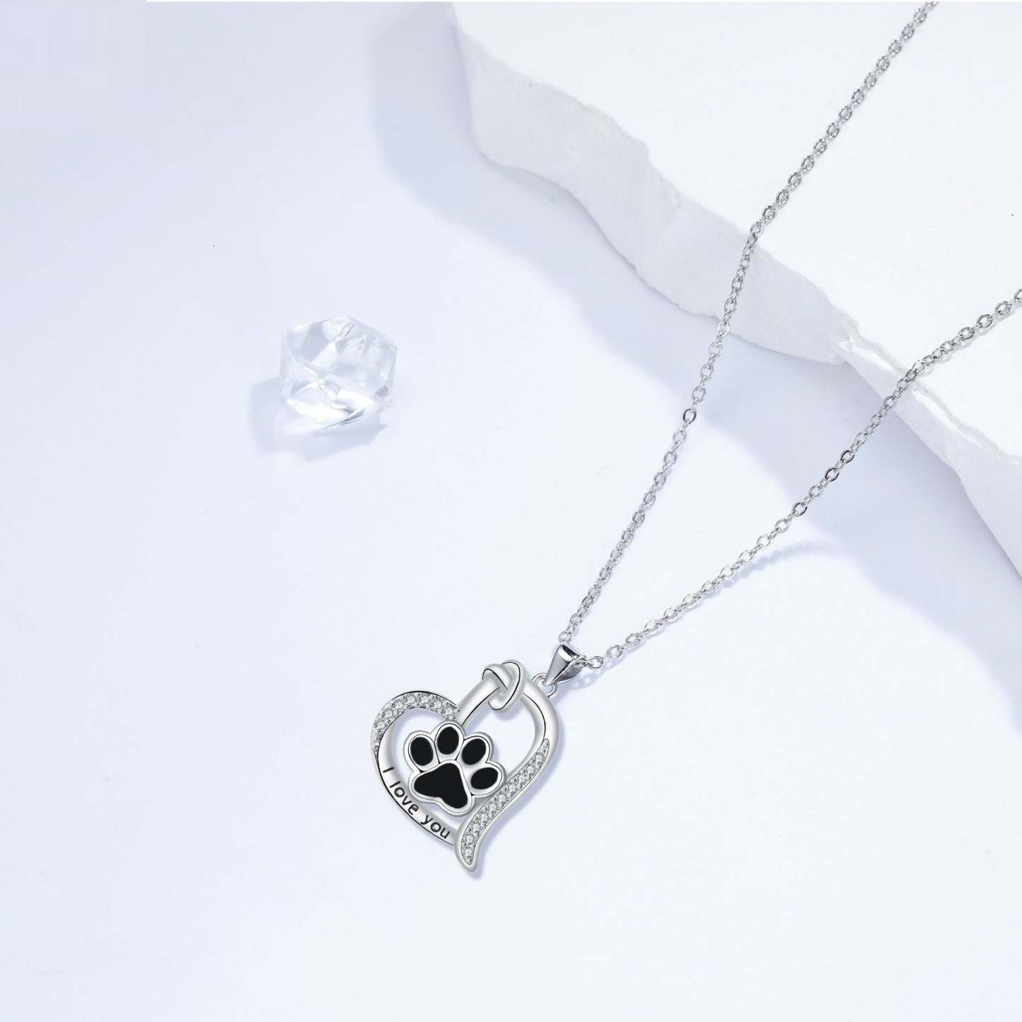 Heart-shaped Dog Paw Print Necklace with Zirconia